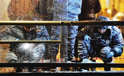 12月7日,警察在发生爆炸的公交车站调查。 俄罗斯首都莫斯科市中心的一个公交车站7日发生爆炸事件,造成3人受伤。 新华社发
