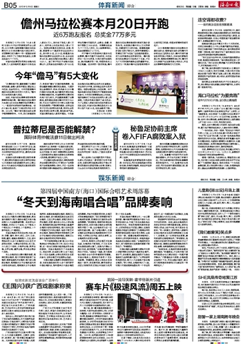 海南日报 体育新闻 娱乐新闻 013 2015-12-091 2015年12月09日 星期三