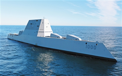 “朱姆沃尔特”号编号为DDG—1000,长约180米,造价高达43亿美元,是美国有史以来建造的最大驱逐舰,也是3艘同名级驱逐舰的首舰。