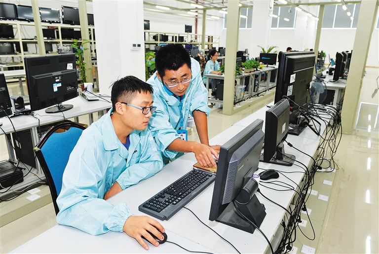 12月7日,三亚市创意产业园区中兴通讯三亚研发培训基地的技术人员正在临时租用的标准厂房里调试软件。该基地是投资项目百日大会战新开工项目,总投资8亿元,正在加紧建设。