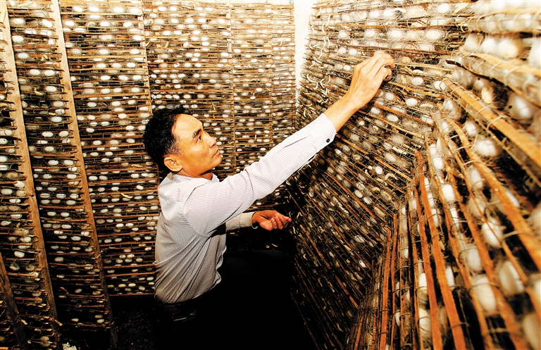 “从去年开始,用3年时间打造年出售蚕茧超千斤以上的蚕农1000户,年出售蚕茧超万斤以上村小组100个,建设‘千斤户,万斤村’,起到示范带动作用。”该县农业局副局长刘志峰说,全县涌现出不少种桑养蚕收入高的典型村和示范户,年出售蚕茧都在5万斤以上、收入接近100万元的村庄,农户平均亩桑年产茧达到400斤,亩桑年产值都在6160元以上。