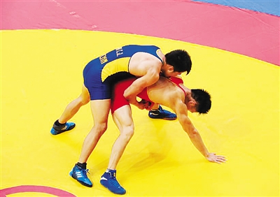 今天分别进行了男子61公斤级、70公斤级和125公斤级的比赛。其中,最激烈的一场比赛要数内蒙古队的孟和吉干与山东队的吴显争夺自由式摔跤男子70公斤级冠军的决赛。第一局,山东队吴显表现出色,以4:3领先孟和吉干。第二局比赛,孟和吉干开始反击,在短时间内连拿8分。最后一个回合中,抱起吴显的一条腿,完成一个漂亮的过肩摔,赢得现场观众阵阵掌声。最终,孟和吉干以16:4成功逆袭对手,获得自由式摔跤男子70公斤级比赛冠军。