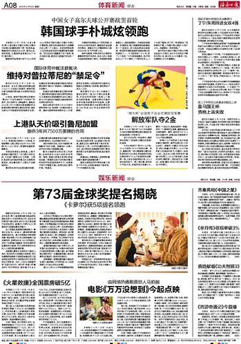 海南日报 体育新闻 娱乐新闻 008 2015-12-121 2015年12月12日 星期六
