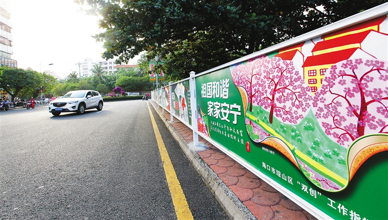 12月12日,海口市琼山区府城三角公园新设立的宣传栏让街道变得整洁清新。而不久之前,这里研究私彩的摊位“霸占”了半条马路,既扰民又影响市容。本报记者 张茂 摄