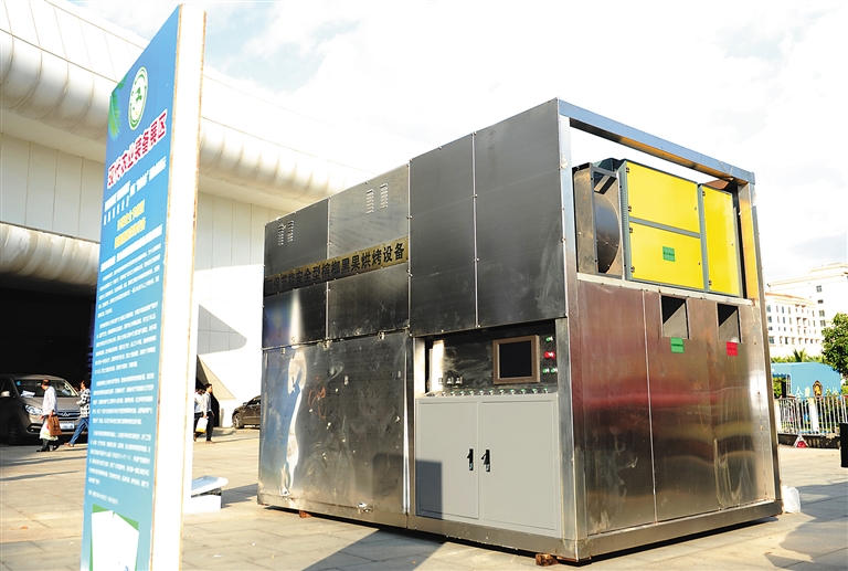 看似不可调和的矛盾,解决方法就在这台四四方方的机器上,牌子上“环保安全节能型槟榔黑果烘烤机”的名字,清晰地表明了它的身份。