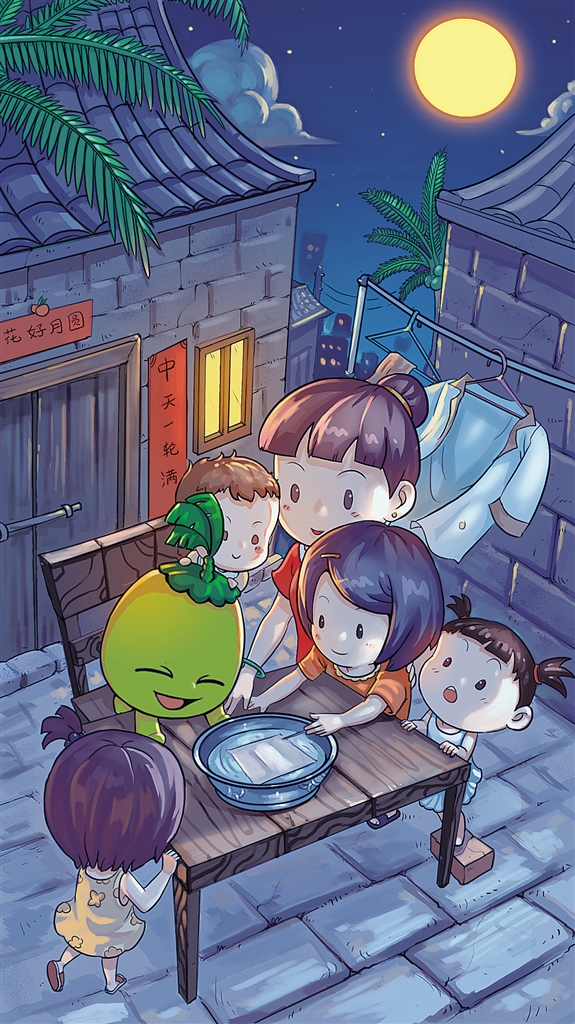随手翻开一页图册,我们看到,中秋节当天,“波波椰”一整天都没有闲着,先是手把手教大家做月饼,又是带着小伙伴们登上高地放天灯、端着水盆看嫦娥。夜深了,也闹累了,女孩们就放下水盆,在水面上摊上一层薄纸,再轻轻放上一根针,眼见着纸慢慢落入水中,针却依然浮在水面,屏息已久的人群爆发出掌声和笑声——这是琼北独有的风俗,投针成功的人在接下来的一年里都将事事顺遂。