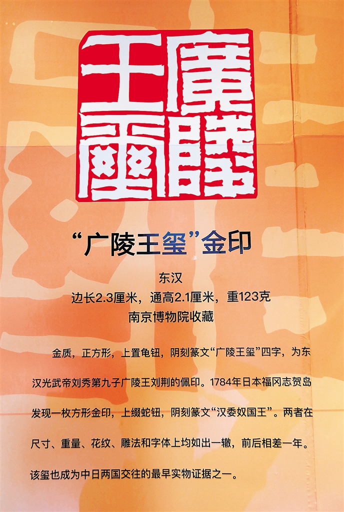 史书可循,《后汉书·东夷列传》中就有提到:“建武中元二年(公元57年)倭奴国奉贡朝贺,使人自称大夫,光武赐以印绶。”章佩岚说,这两枚在海上丝绸之路沿线地区发现的印章,目前已经成为中日两国往来的最早实物证明之一。