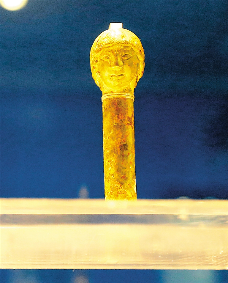 代表性文物:唐代昆仑女子头像铜杖首、南宋金腰带