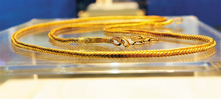 在文物精品展中所展出的文物中,一条金腰带着实令人惊艳。腰带长175公分,以六根金线相绕而织,再以金色龙头为扣,周身华丽,璨如星光。这样的一件绝美文物,就出水于南宋时期的“南海一号”沉船。