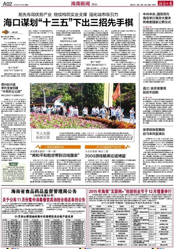 海南日报 海南新闻综合 002 2015-12-141 2015年12月14日 星期一