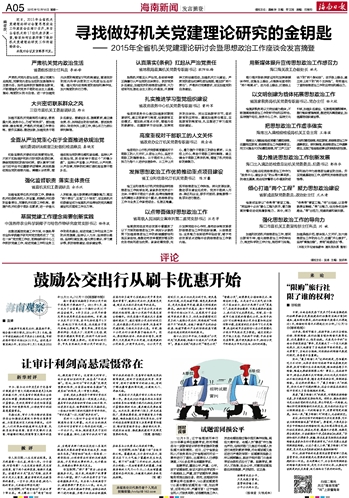 | 海南日报 海南新闻发言摘登 005 2015-12-141 2015年12月14日 星期一 |