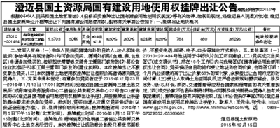 澄迈县国土资源局挂牌出让国有建设用地使用权公告