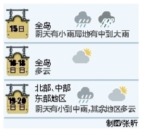 其中,16日至17日,气温将降至最低,最低气温中部山区10℃~12℃,北部和西部地区12℃~15℃,东部和南部地区15℃~18℃。18日起全岛气温缓慢回升。