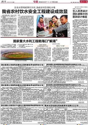 海南日报 海南省水务厅“十二五”建设成就 011 2015-12-151 2015年12月15日 星期二