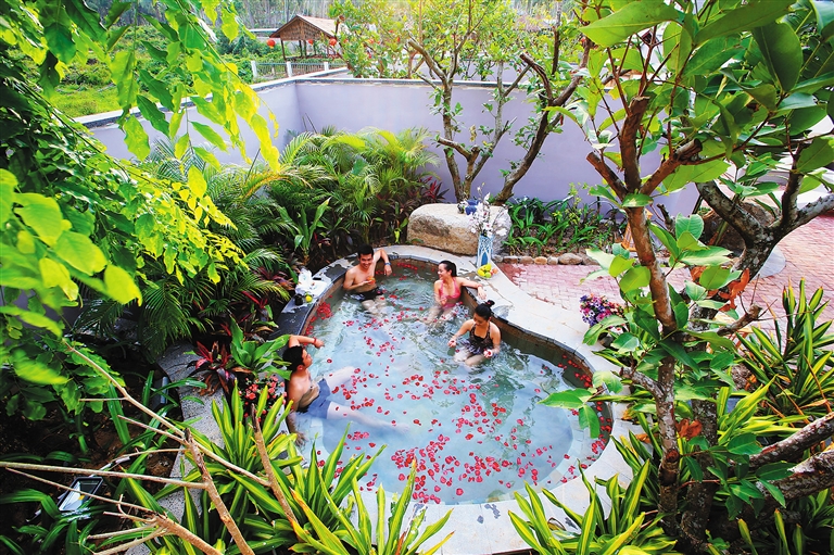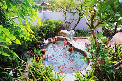 观澜湖温泉度假区中,游客可以体验具有中国、日本、韩国、印度等各国特色的温泉;热带雨林、黎苗风情、山岭奇峰、特色温泉……在保亭的七仙岭温泉国家森林公园,游客可以享受到丰富的资源;在三亚珠江南田温泉度假区,形态功能各异的温泉池60余个,分布在天然椰林中,一池一景……海南诸多温泉企业在提供基本泡汤服务的同时,围绕体验温泉文化开展文化康体活动,为游客提供了内涵丰富的温泉休闲度假体验。
