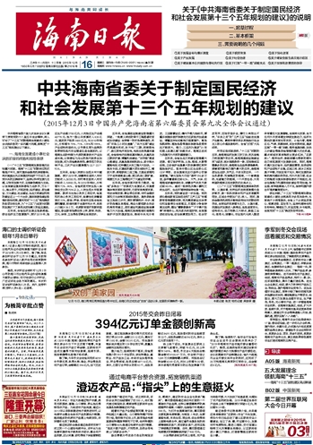 海南日报 头版 001 2015-12-161 2015年12月16日 星期三