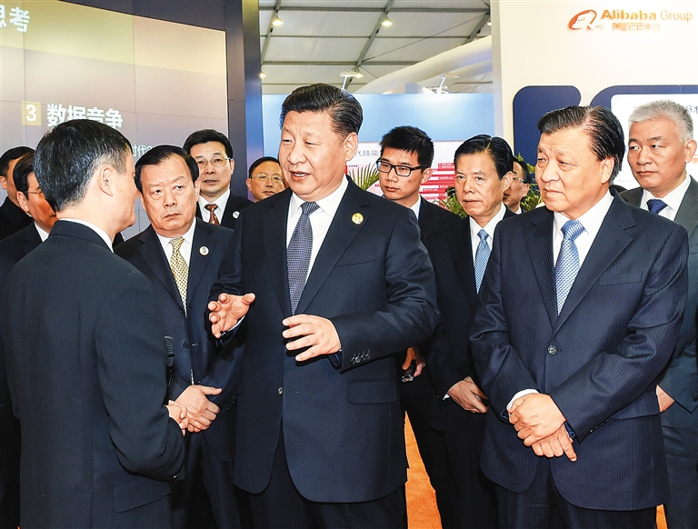 下午3时许,习近平抵达博览会展馆,首先前往发展理念区,观看“智慧峰会”、“智慧乌镇”介绍及互联网博物馆演示。随后,习近平来到“互联网+”主题展区,视察国内外重点网信企业最新技术产品等成果,同企业家们亲切交流。在“互联网创新”展区,习近平听取有关科技企业负责人介绍创意型产品和技术。