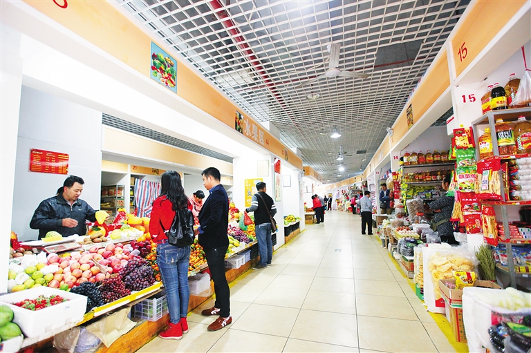 今天,记者走访了培龙市场却发现,清爽的市场环境让人眼前一亮,市场外“恼人”的占道经营小摊贩失去踪影,取而代之的是干净通畅的路面。走进宽敞的市场内,一个个规范的摊位整齐排列,摊主身着统一的销售员服装,微笑着为前来挑选蔬菜的顾客服务。舒适的购物环境,让人感觉如走入超市一般。