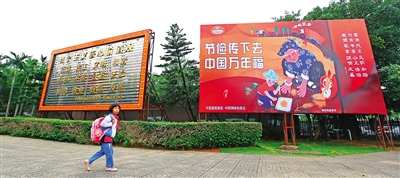 图为位于海口市红城湖路的社会主义核心价值观宣传画。