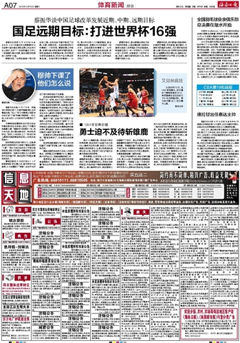 海南日报 体育新闻综合 007 2015-12-191 2015年12月19日 星期六