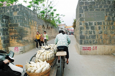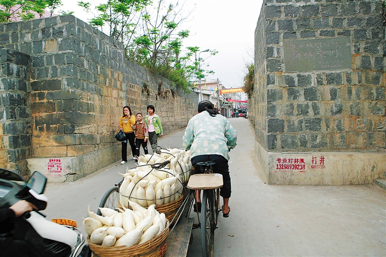 “从记事起,东门里附近的城墙还残留不少,东门的门洞还是完整的,但是没人注意到它的重要性,嫌它碍事,只要有人家需要盖房子,就会从城墙上扒下些许砖块,于是城墙越拆越少,最后只剩下了这些。”符正义说,好多年前,城砖到处都是,附近很多居民就拿来盖房子,后来房子拆了,一些城砖就不知去向,可惜啊!”符正义看着房前堆放的这一堆堆城砖告诉记者。