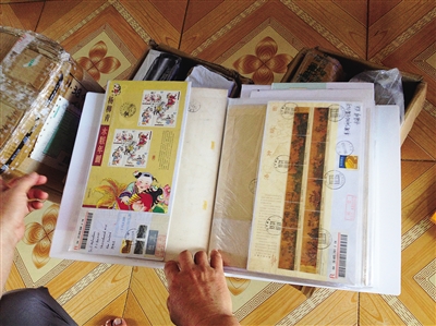 苏大忠是红旗中学一位普通的教师。当他拿出三个中型纸箱子时,记者看到箱子里的是他近6年来用原地封编组而成的专题邮集,每一部都是5框80页。分别是:《祝福祖国》、《血脉相连》、《多难兴邦》、《为你打开一扇文学之门》、《心灵之旅——中国宗教文化艺术赏析》、《水》。细细说起这些“宝贝”时,他高兴得像个刚刚得到了压岁钱的孩子。