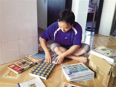 一走进海口市红旗镇红旗中学里苏大忠的宿舍,记者立刻被书架上摆满的有关集邮的书籍杂志所吸引,最底层特别显眼的是经过精心装订成册的《集邮》杂志,其中最早的《集邮》杂志是1980年的合订本。