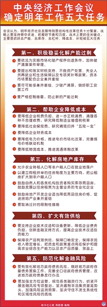 12月18日至21日举行的中央经济工作会议对明年经济形势、稳增长重点、结构性改革战术任务、重要改革领域、惠民生要点和开放战略做出了明确部署。会议强调,稳定经济增长要更加注重供给侧结构性改革。
