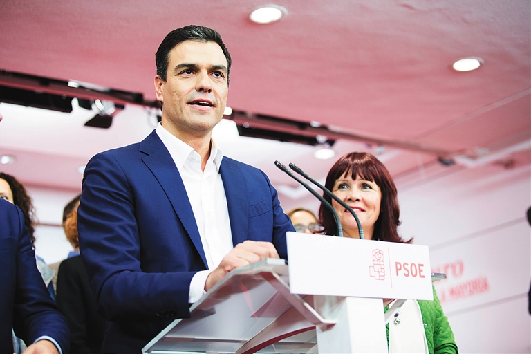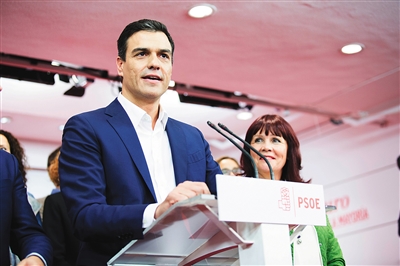 12月20日,在西班牙马德里,西班牙工人社会党主席佩得罗·桑切斯在选举结果揭晓后发表讲话。 西班牙副首相索拉娅·萨恩斯·德圣玛丽亚在20日晚举行的新闻发布会上宣布,执政党人民党在当天的大选中获得多数选票,但没有赢得议会绝对多数,不能独立执政。 新华社发