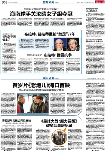 海南日报 体育新闻 娱乐新闻 020 2015-12-221 2015年12月22日 星期二
