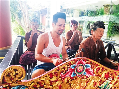 “猜猜这是什么乐器?猜到的我请你们吃当地大餐!”吉飞龙在微博中发布的照片里,有一张他正在弹奏某种似用竹筒制成的超长乐器。而在另一张照片中,吉飞龙一身休闲打扮,笑容满面地在巴厘岛街头品尝当地美食。