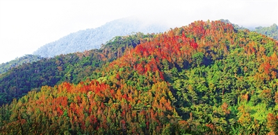 “五指山市的红叶主要分布在水满乡境内,阿陀岭山脉也有少量分布,整个五指山,从山脚到山顶,都有红叶。天气越冷红叶越红,观赏红叶的最佳时间是11月底到来年1月初。”五指山市旅游商务局局长陈键介绍,五指山的热带雨林红叶,不仅有内地常见的枫树,更有内地少有的山槐树、山海棠等。