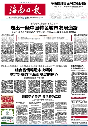 海南日报 头版 001 2015-12-231 2015年12月23日 星期三