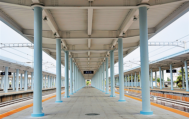 海口站扩建项目自去年12月开始动工。“站场改建工程量大,工期紧,加上要在既有站台保持运营的状态下施工,时常有旅客进出站,这无形中加大了施工难度。”兰巍说。