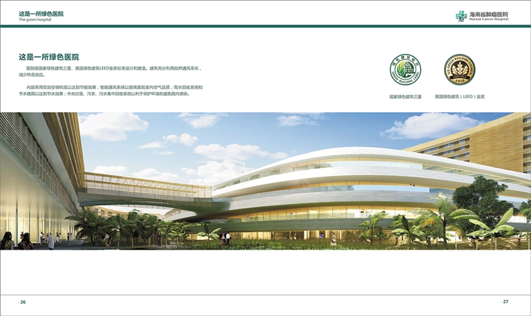医院按国家绿色建筑三星、美国绿色建筑LEED金奖标准设计和建造。建筑充分利用自然通风采光、减少热岛效应。