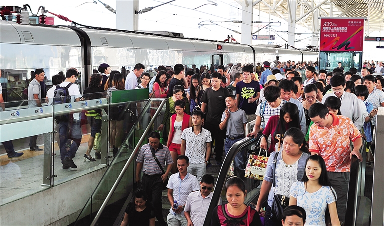 路通,则人通、财通。在这一点上,东环高铁已显现出它的巨大推动力。据统计,海南东环高铁开通运营后的第一年就迎来井喷式增长,2011年即实现发送旅客982万人次,比预期估算300万人次超出了682万人次。截至2015年9月底,东环高铁累计发送旅客5700万人次,日均发送3.3万人次,平均上座率为113%。