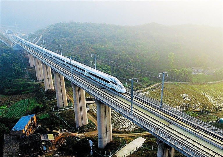 12月26日,成(成都)渝(重庆)高铁开通运营,成都至重庆的运行时间缩短至约一个半小时。成渝高铁全长308公里,于2010年3月开工建设。它的开通运营对进一步发挥成都、重庆区域中心城市的辐射带动作用,推动沿线新型城镇化建设具有重要意义。 新华社记者 刘潺 摄