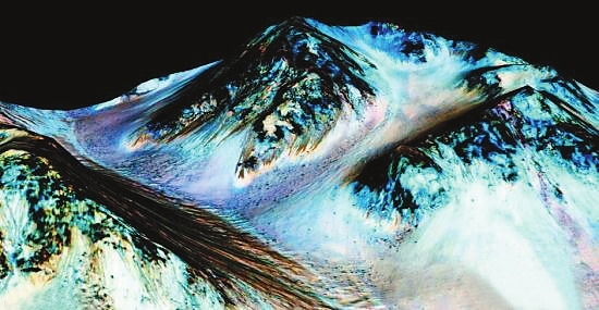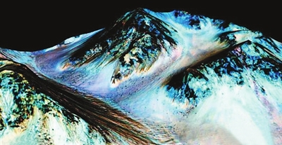 9月28日,美国航天局宣布,在火星表面发现了有液态水活动的“强有力”证据,为在这个红色星球上寻找生命提供了新线索。自2006年以来,美国火星勘测轨道飞行器多次在火星山丘斜坡上发现手指状阴影条纹“季节性斜坡纹线”。它们在火星温暖的季节里出现,并随着温度上升而向下延伸,到了寒冷季节就消失。研究人员分析了火星勘测轨道飞行器获取的火星表面4处地点“季节性斜坡纹线”的光谱数据,发现该数据与水流沉淀形成的水合盐矿物的光谱信号一致,而周围地貌却没有盐的光谱信号。据此认为,“季节性斜坡纹线”是现今火星水活动的结果,是火星表面有液态水的有力证据。火星是太阳系中最像地球的行星,而液态水是支持生命存在的必要条件,新发现无疑再次激起人们对火星生命的遐想。