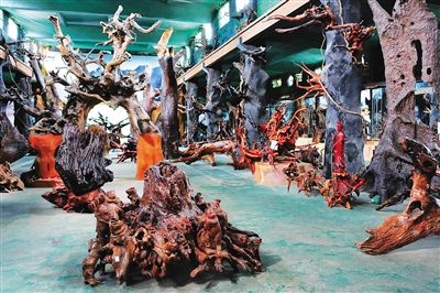 “山间河边有许多奇形怪状的坡垒木、阴沉木等树根,任由你想象成什么,它就像什么。”胡信连说,根雕是七分天成、三分雕琢,根雕与其他雕塑最大的不同,就在于根的唯一性,要成为一个好的根雕艺人,必须学会顺根而为,依据它的形态与纹理,找到最适合它的意象,锦上添花。