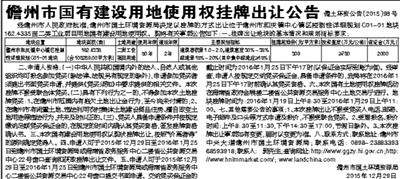 儋州市国有建设用地使用权挂牌出让公告