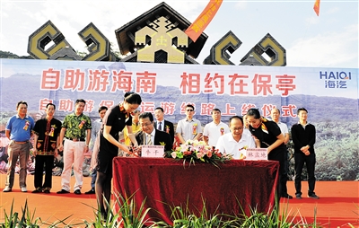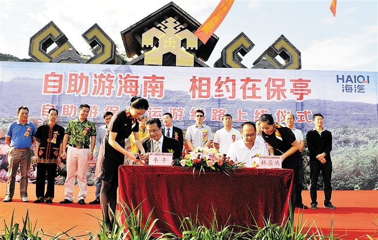 保亭县副县长刘纬华说,近年来,保亭县提出了打造“温泉雨林谧境、国际养生家园”的发展目标,依托生态城市建设,以发展生态养生度假旅游为主体,文化旅游和乡村生态旅游为补充,形成特色鲜明、多元旅游文化并存的产业发展新格局。这次保亭县政府携手海汽集团借助互联网平台合作开发“自助游保亭”为主题的线上线下旅游产品,对打通汽车客运站至旅游景区、酒店线路通勤车接驳“最后一公里”,拉动游客“自由行”有重要意义。保亭将以此次合作为新起点,不断创新进取,完善功能,为广大游客提供更加方便快捷、实惠的旅游服务。