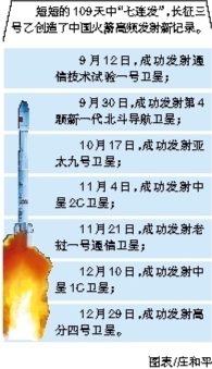 这是长征三号乙运载火箭109天里“七连发”,发发成功。