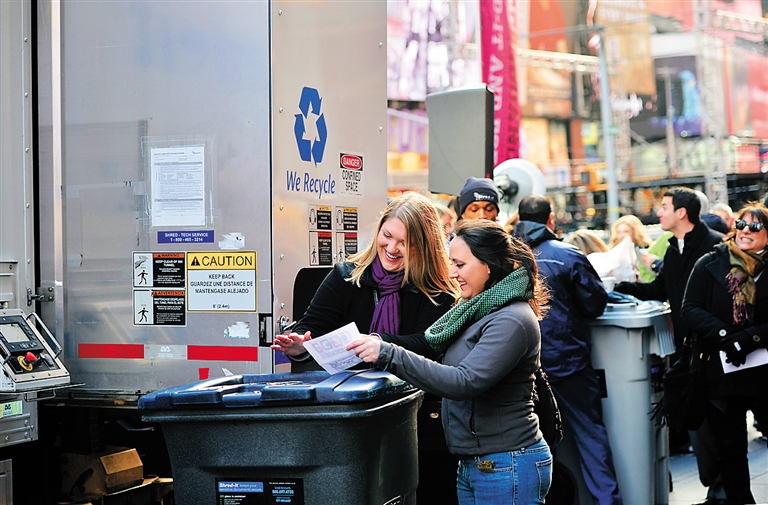 12月28日,在美国纽约时报广场,人们将写下烦心事的纸片扔进垃圾桶。 当天,纽约举行一年一度的“解脱日”活动。在市中心的时报广场上,人们把烦心事写在纸条上,扔到专设垃圾桶里面,以“解脱烦恼”开始新生活。这项活动始于2007年,是纽约辞旧迎新的众多庆祝活动之一。 新华社记者 王雷 摄