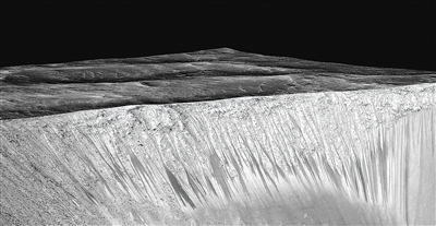这张由美国航天局和亚利桑那大学联合发布的图片显示,火星山丘上的“季节性斜坡纹线”是火星表面有液态水的有力证据。 美国航天局9月28日宣布,在火星表面发现了有液态水活动的“强有力”证据,为在这个红色星球上寻找生命提供了新线索。火星是太阳系中最像地球的行星,而液态水是支持生命存在的必要条件,新发现无疑再次激起人们对火星生命的遐想。 新华社/路透 |