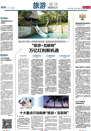 省旅游委主任孙颖更是将“旅游+互联网”作为海南旅游转型升级的一个必然选择。“海南旅游业态正在发生快速变化,面对旅游新业态和游客新需求,要以互联网为牵引,加强信息技术在旅游业中的广泛应用。”孙颖认为,通过“旅游+互联网”两者的融合创新发展,能够推进旅游产品和服务升级,满足多样化旅游需求,实现旅游发展方式转变和产业转型升级。