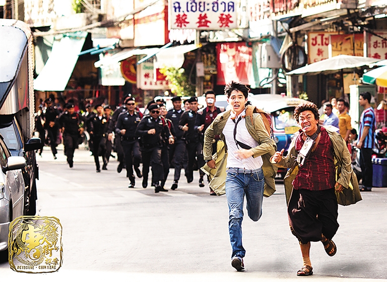 海南院线业内人士告诉记者,《唐人街探案》几乎全部外景都在泰国拍摄,讲述的是刘昊然饰演的少年秦风警校落榜后,跟着远房表舅、王宝强饰演的唐仁去泰国散心。然而表舅喜好自夸,他自称“唐人街第一神探”,全泰国的大爷大叔小猫小狗没有不知道他的。但相处一段时间后秦风发现,表舅根本不是什么神探,而且还让秦风发现他既无能又猥琐。更为离奇的是,表舅唐仁居然还在某个夜晚沦为一桩凶案的嫌疑人,遭到多人指认。为了躲避警察追捕,也为了调查案件真相,外甥和表舅不得不一起踏上了亡命天涯的囧途。表舅和外甥两人的泰国之旅,在陈赫饰演的疯狗警察黄兰登和肖央饰演的草包警察坤泰的追捕过程中窘态百出,笑料不断,王宝强的夸张表演,让这部喜剧电影喜上加喜,堪与《泰囧》里的宝宝媲美。