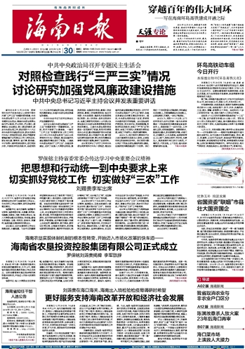 | 海南日报 头版 001 2015-12-301 2015年12月30日 星期三 |