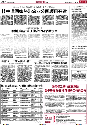 海南日报 海南新闻时政 002 2015-12-311 2015年12月31日 星期四