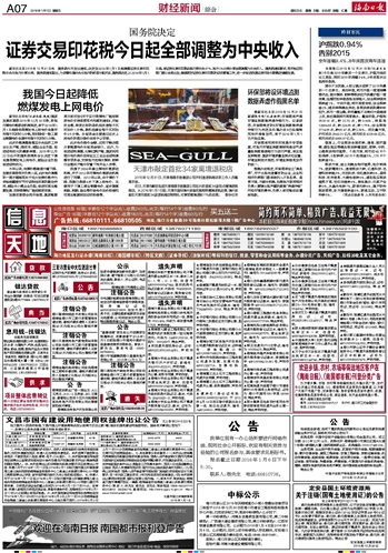海南日报 财经新闻综合 007 2016-01-011 2016年01月01日 星期五