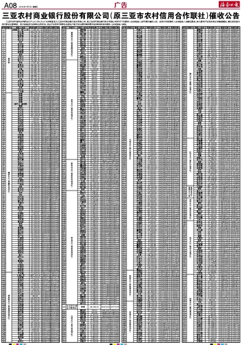 三亚农村商业银行股份有限公司(原三亚市农村信用合作联社)催收公告